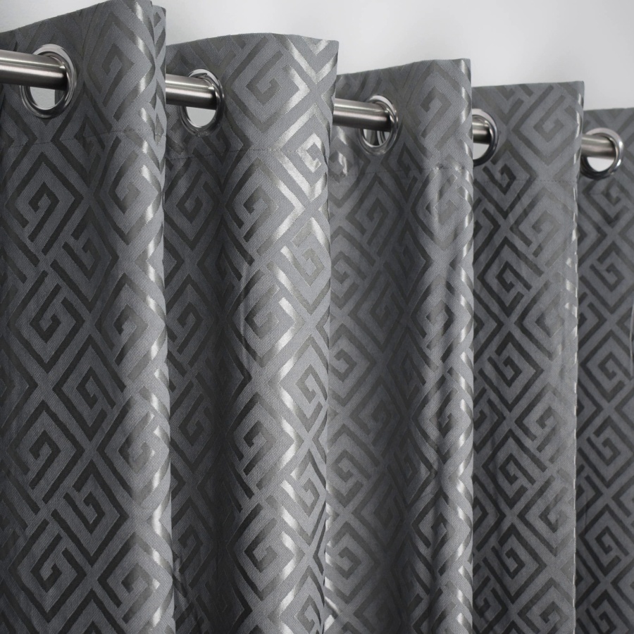 Κουρτίνα σατέν, ραμμένη, έτοιμη με τρούκς ( κρίκο ) σε 4 χρώματα: γκρι-μολυβί, γκρι, εκρού, μπεζ.