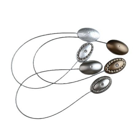 Διακοσμητικά μαγνητάκια για κουρτίνες με μεταλλική δέστρα. Μήκος δέστρας 30 εκατοστά.