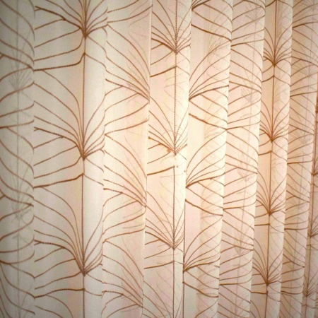 Κουρτίνα, γάζα, ραμμένη, έτοιμη με ρέλι σε 6 χρώματα: σοκολατί, καφέ, σπαγγί, γκρι, άσπρο, άσπρο-καφέ.