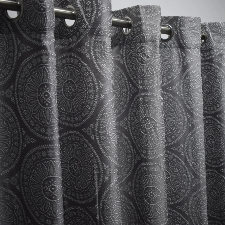 Κουρτίνα ζακάρ, ραμμένη, έτοιμη με τρούκς ( κρίκο ) σε 4 χρώματα: γκρι, άσπρο, εκρού, καφέ.