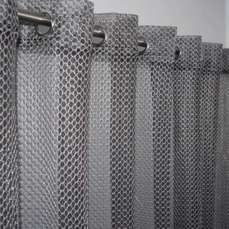 Κουρτίνα ραμμένη, έτοιμη με τρούκς ( κρίκο ) σε 4 χρώματα: μαύρο-γκρι, άσπρο, εκρού, ασημί.