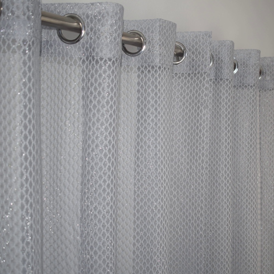 Κουρτίνα δίχτυ, ραμμένη, έτοιμη με τρούκς ( κρίκο ) σε 6 χρώματα: γκρι, ασημί, άσπρο, εκρού, μπεζ, μόκα.