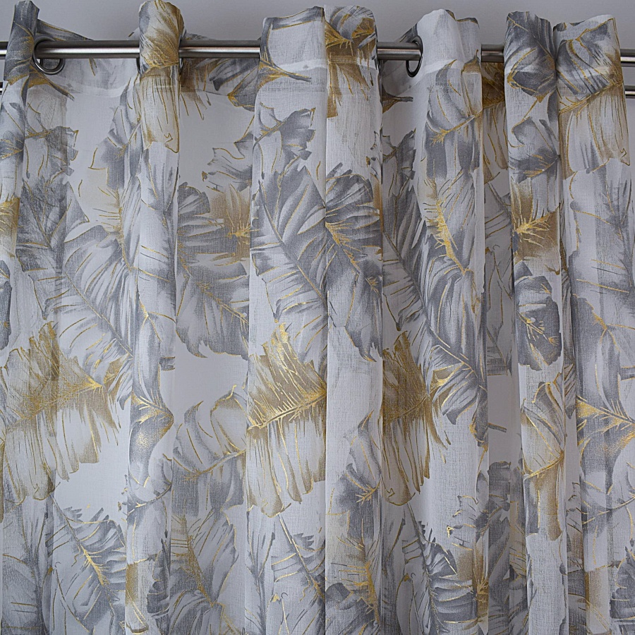 Κουρτίνα γάζα, έτοιμη ραμμένη με τρουκς (κρίκους) σε δύο χρώματα : γκρι, μπεζ-καφέ.