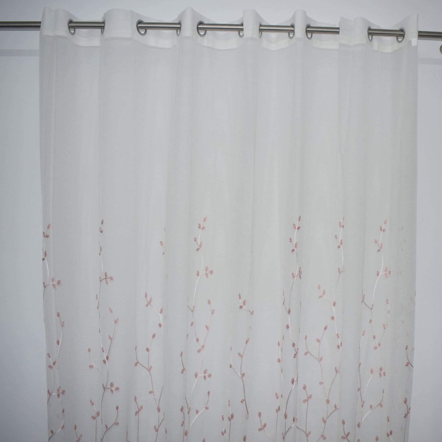 Κουρτίνα γάζα, ραμμένη, έτοιμη με τρούκς ( κρίκο ) σε 3 χρώματα: ροζ, γκρι, μπεζ.